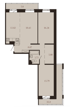 Площадь от 44.58 м2